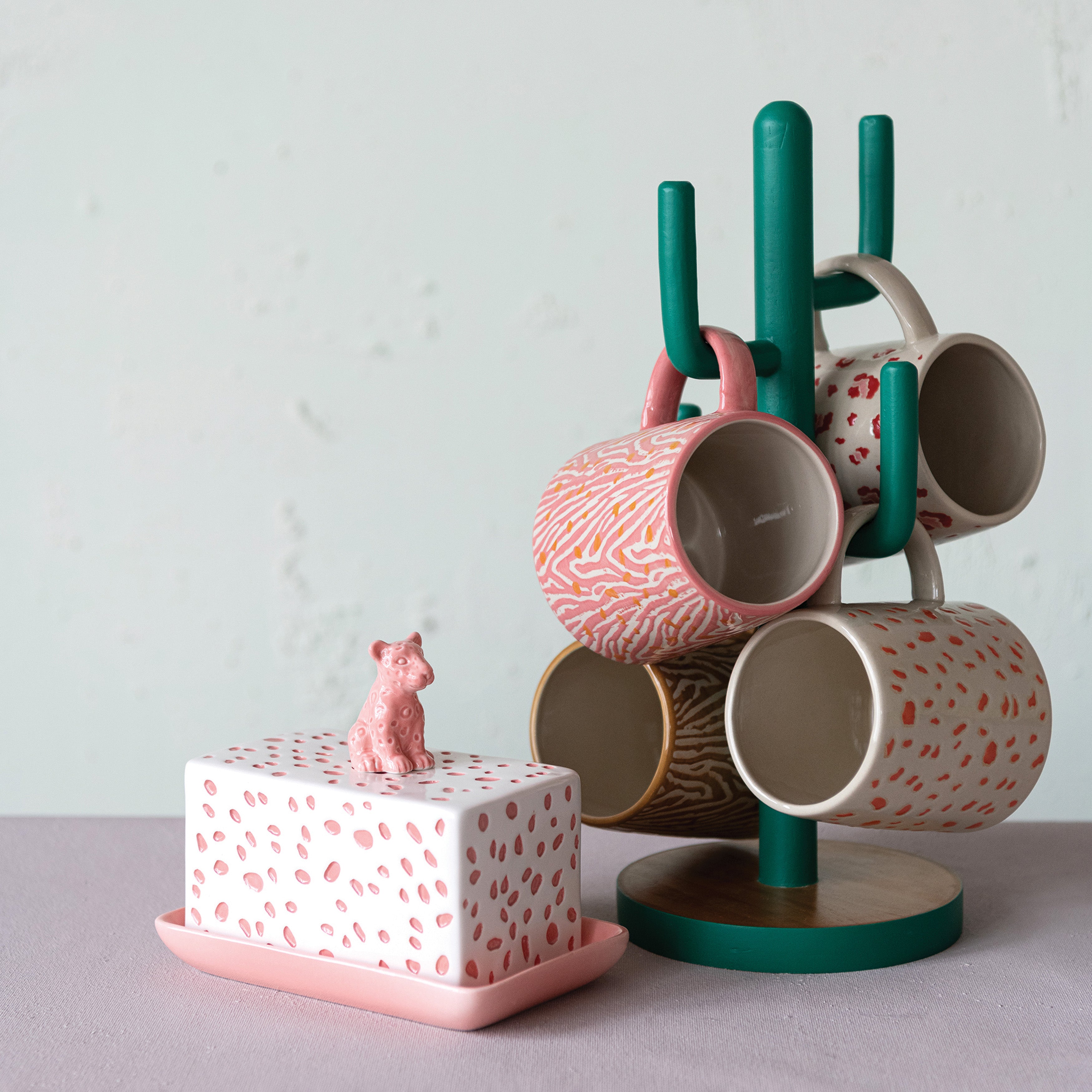 Butter Dish and cover with pink cheetah on top.